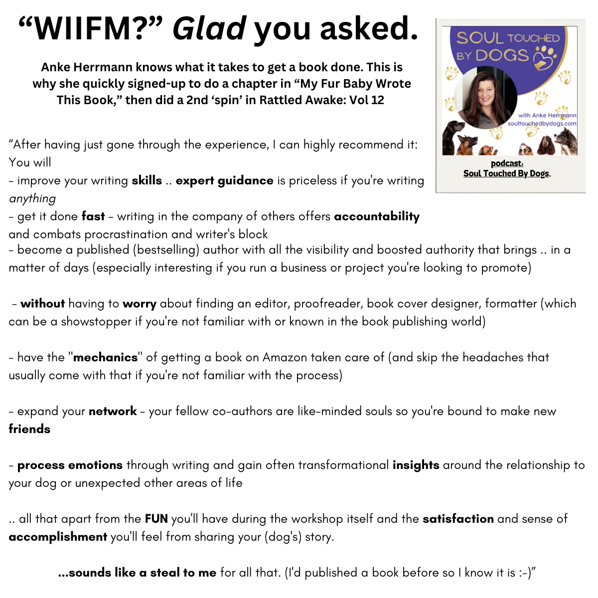 ?You will get your chapter done, edited, packaged, and published — in a single weekend — working with Lonnee Rey, an award-winning editor, story development coach and publisher.